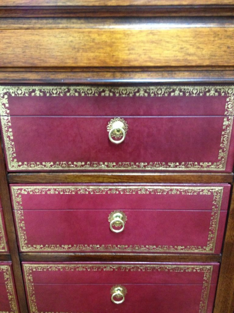 Nous réalisons le remplacement, des cuirs dorés de vos dessus de bureaux, et de secrétaires, usés par le temps.